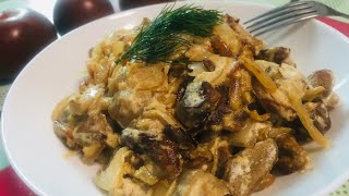 5. Добавьте куриное филе и обжаривайте его до золотистого цвета.